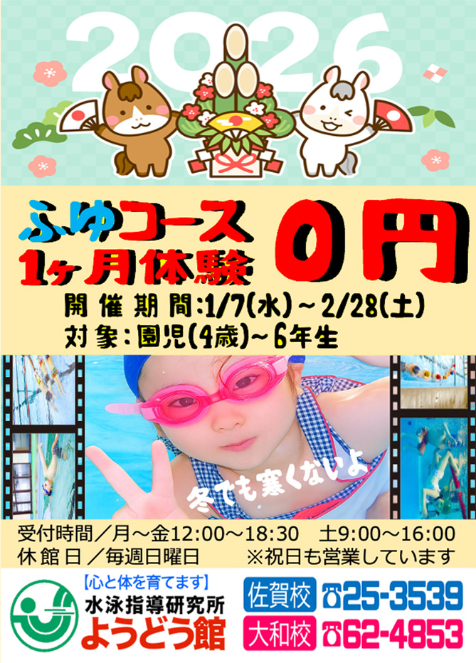 初めて通ったのは幼稚園の年長さんだった夏の頃でした。顔を水につけることどころか濡らすのも嫌がり、お風呂の顔洗いは大変でした。ようどう館の体験の日、突然プールの中に入り、他の子供さんのバタ足からくる水しぶきが顔にかかり何度も顔をぬぐっている姿を見て大丈夫だろうか、続けられるかとハラハラしたのを覚えています。でも先生からの声かけを受けながら顔を水につけ泣かずに顔を上げた時は驚いたものでした。その日から6年間少しずつ一歩ずつ練習を続け、まさか一級合格できるとは思っておらず、一級合格した日は親子で喜び合いました。体力がなく走ることが苦手な息子がバタフライまで泳げるのは本人にとって自信になり、体育の授業では水泳の授業が一番好きな授業になりました。6年生の最後の月まで通わせるつもりでしたが事情により少し早く退会することになり非常に残念でなりません。今まで本当にありがとうございました。これからもたくさんの子供達に泳ぐこと、泳げることのすばらしさを伝えてください。本当にありがとうございました。