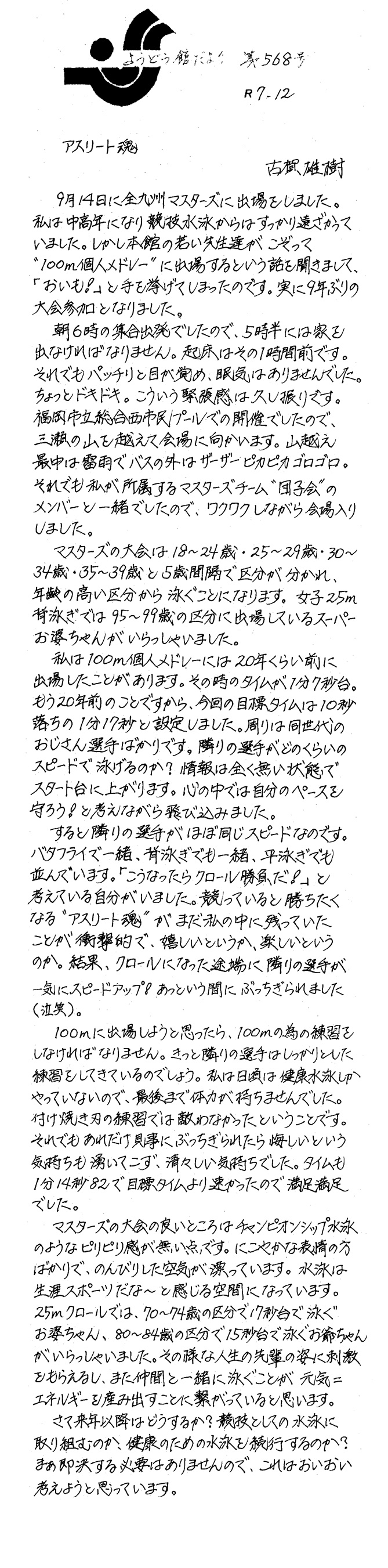 9月   96号:佐賀県ジュニアオリンピック水泳大会優勝に思う